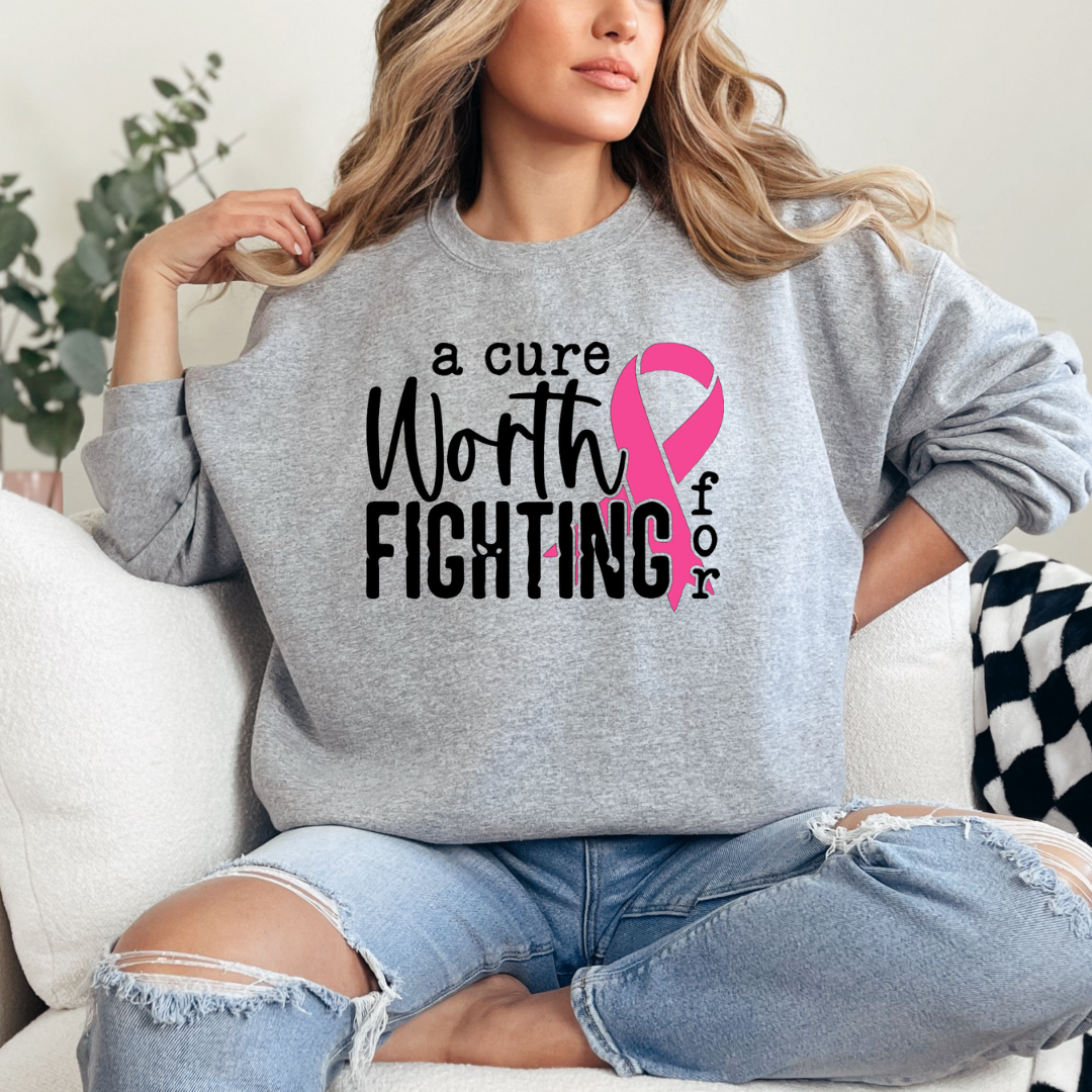 Show your support for someone in your life who has battled or is battling breast cancer - especially if that person is you! These crewnecks state all the uplifting words required to keep you fighting and the iconic pink ribbon that is the symbol for the fight.